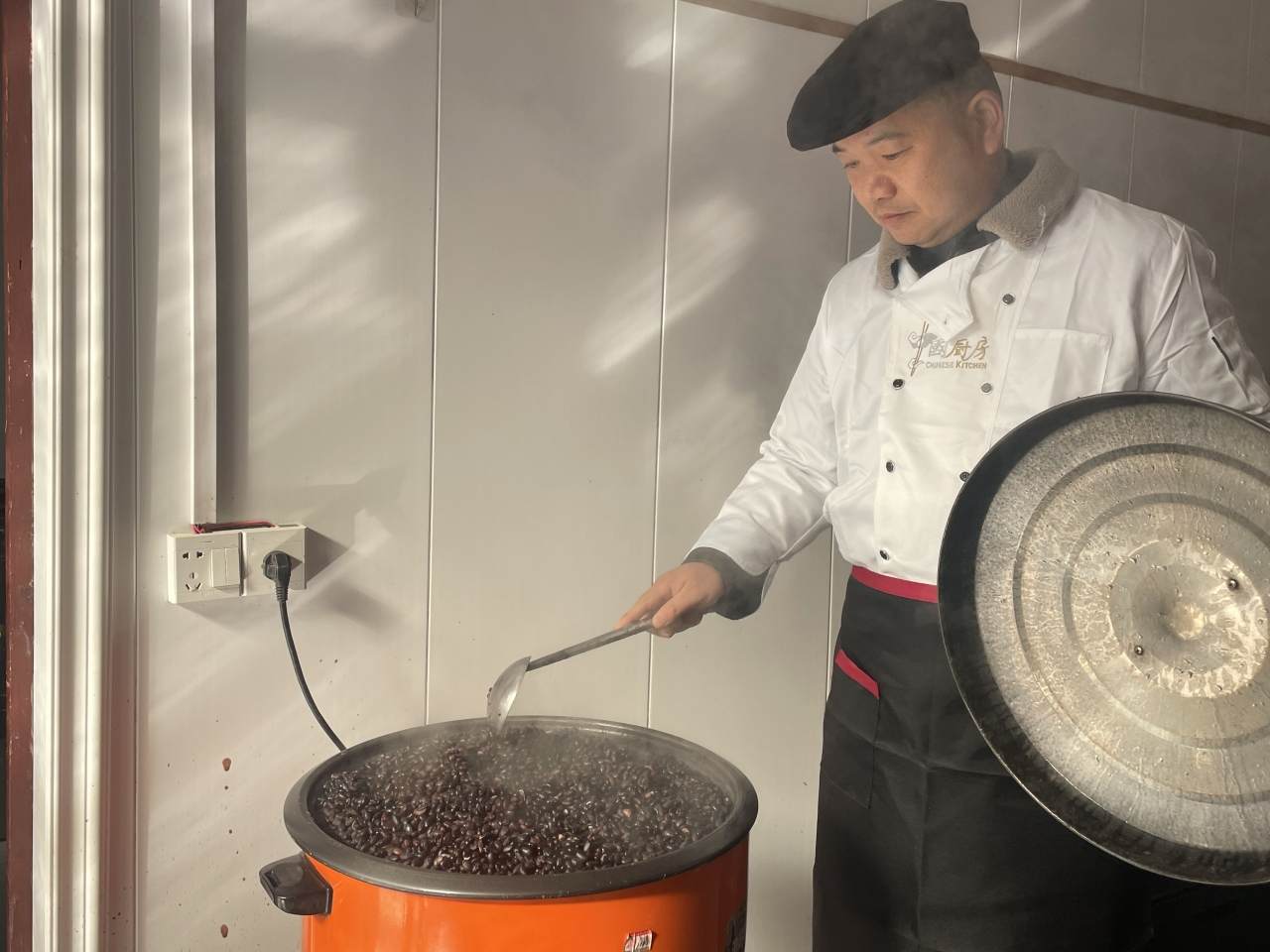 “圆糕做了大概七八年,从方糕的基础上来创新的。”董雨强介绍,大米先浸泡晾干,再粉碎筛粉,制作过程中需进行二次筛粉以确保口感松软。豆沙则采用纯天然豆子,经过泡、烧、磨、熬等工序制成,不含任何添加剂,适合老人、小孩和孕妇食用。
